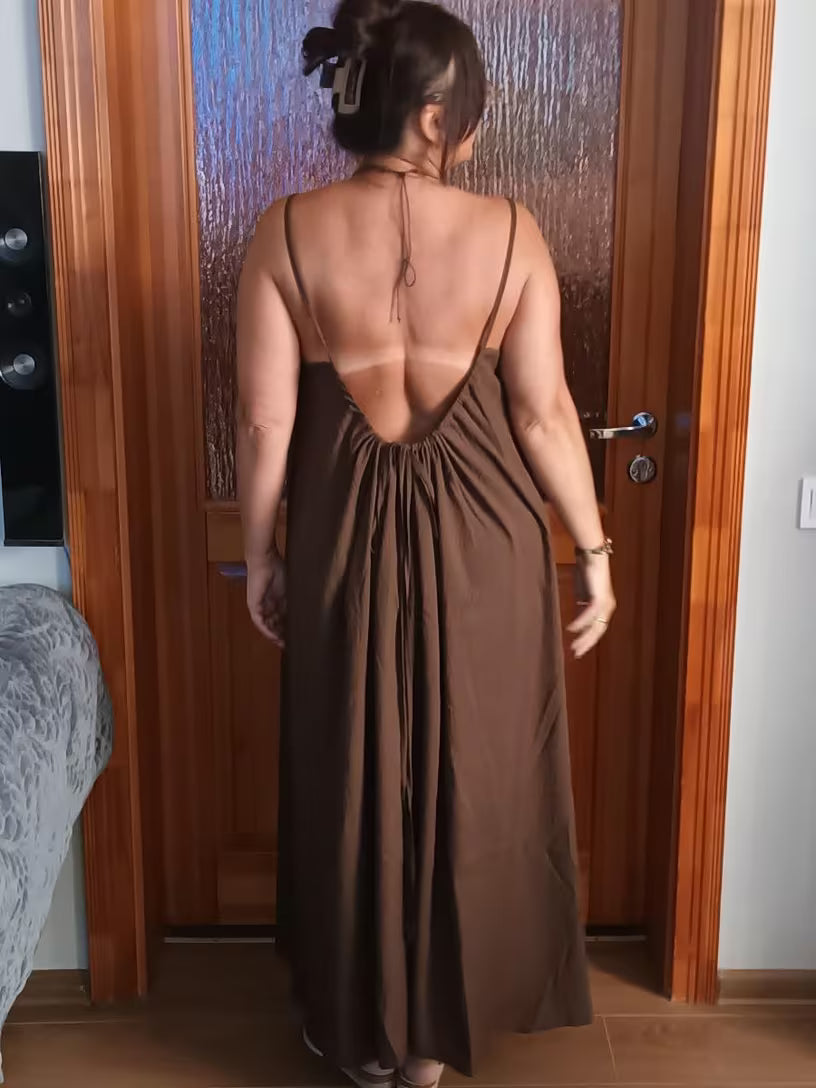 Minimal spaghetti straps add an elegant, barely-there touch, while the open back brings that effortless glow. Fresh, flattering, and confidently feminine.